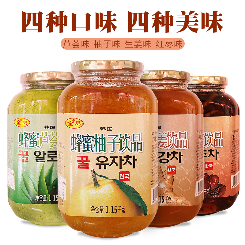 Autumn and winter hot drink South Korea Jindao honey ginger tea sauce 1150g bottled brewed drink honey refined tea pulp drink