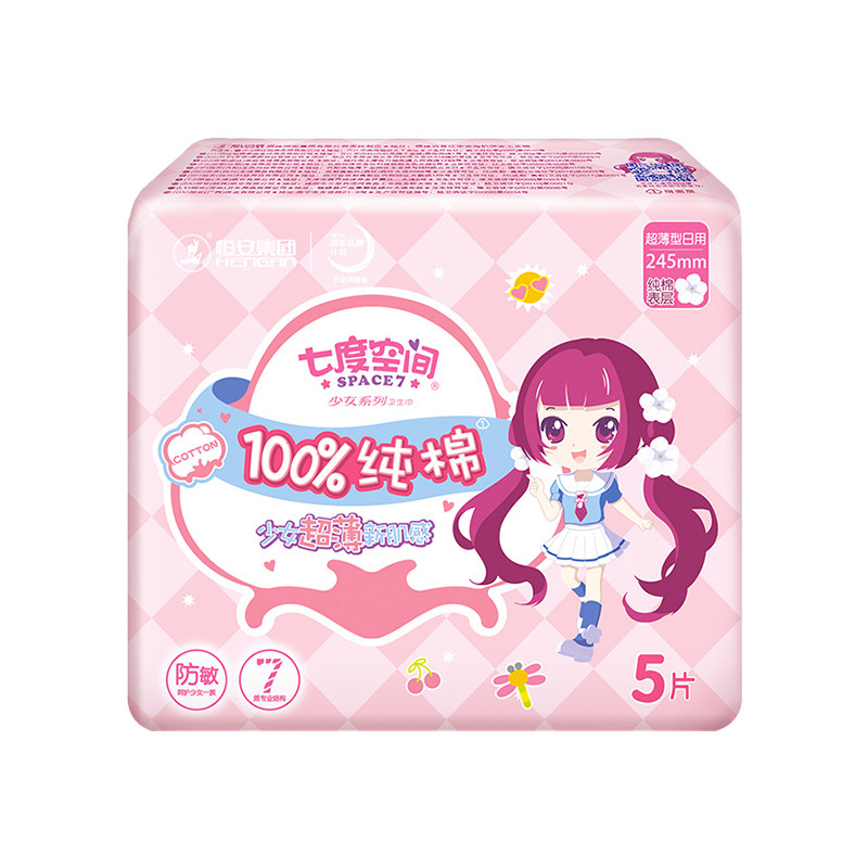 Seven-degree space sanitary cotton girl ultra-thin pure cotton breathable dry and dry daily aunt towel whole box wholesale official