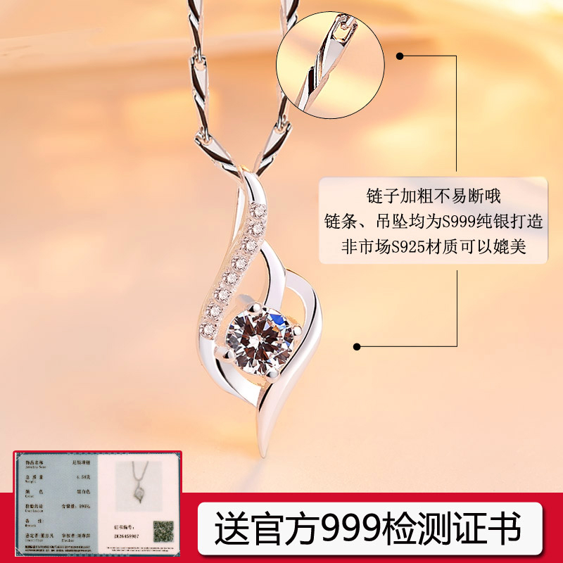 Necklace Women's Clavicle Chain 999 Sterling Silver First Jewelry Korean Version Simple Student Sen Department Trendy Valentine's Day Gift for Girlfriend