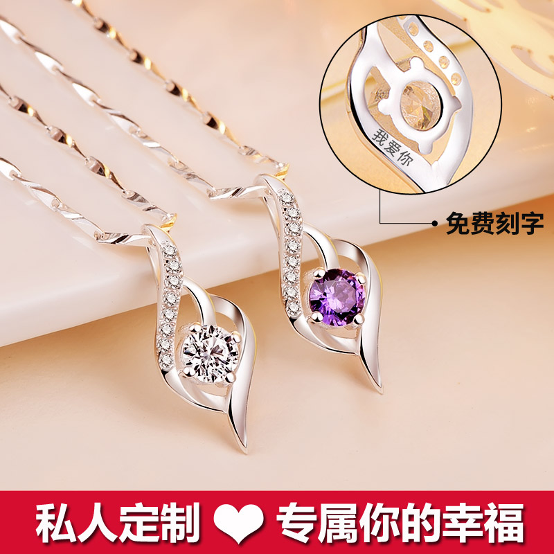 999 pure silver purple diamond (free lettering chain length adjustable) 999 fine silver purple diamond with heart-warming gift box (free lettering chain length adjustable) 999 fine silver white diamond (free lettering chain length