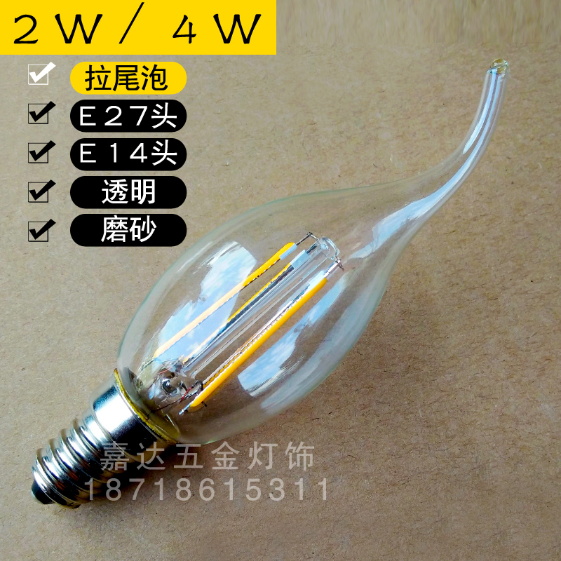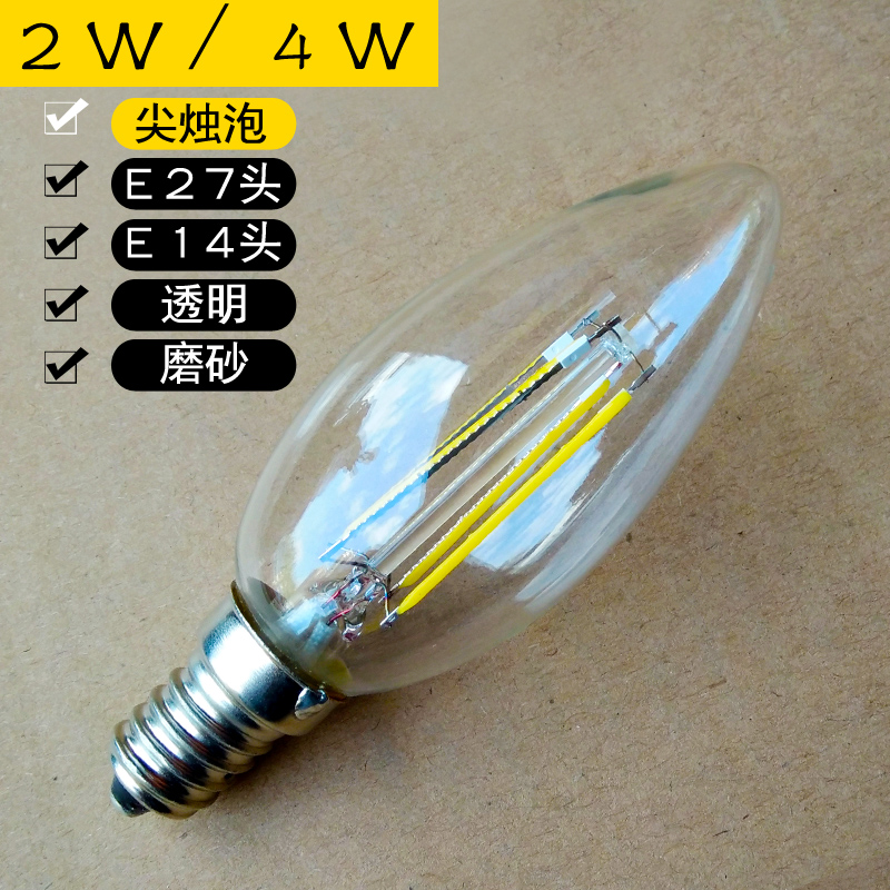 LED Bulb Sharp Bubble Pull Tail Spherical Bubble Frosted Transparent E14E27 Imitation Tungsten Wire Crystal Pendant Light Bulb