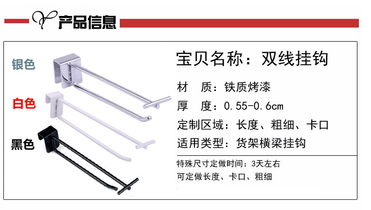 1 52 0 - Car square tube double line peg mall supermarket rack accessories stationery store black and white roast display hook sign