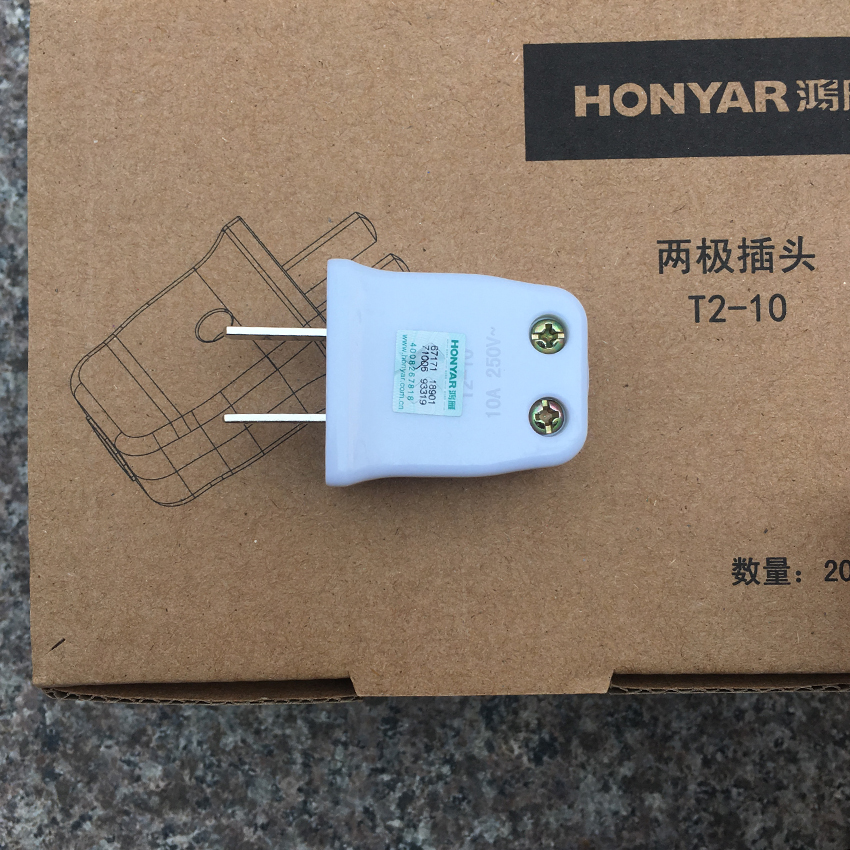 Promotion Hongyan national standard two-eye plug socket power supply 2 eyes two feet two pole 250V10A plug T2-10