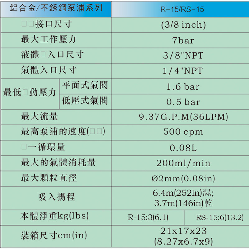 Taiwan Polaroid prona conveying diaphragm pump aluminum alloy R-15 stainless steel RS-15