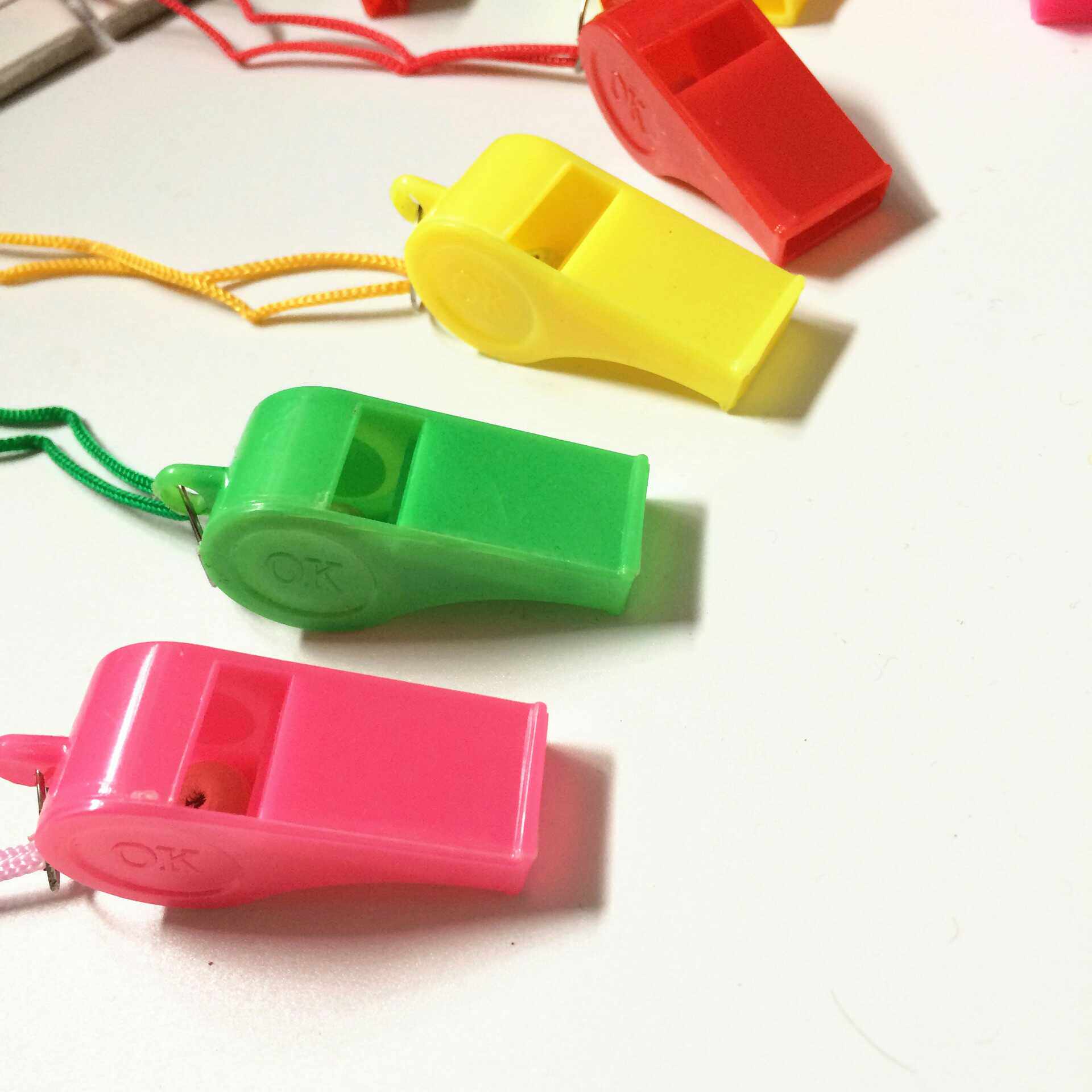 Color whistle plastic whistle referee fans help Wei whistle children whistle with a rope