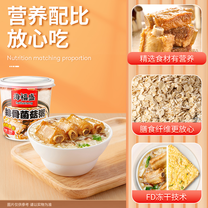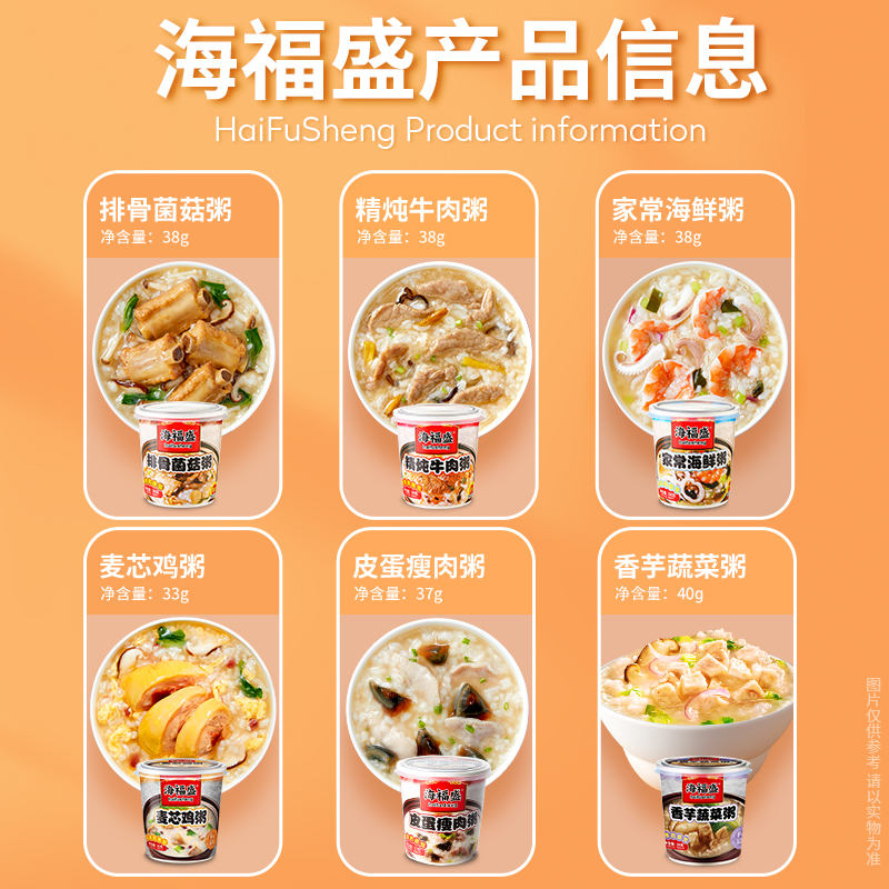 Haifu Sheng Household Regular Seafood Porridge Breakfast Porridge 38g * 6 Cups Breakfast Night Brew Ready-to-eat Ready-to-eat Instant Meal Congee