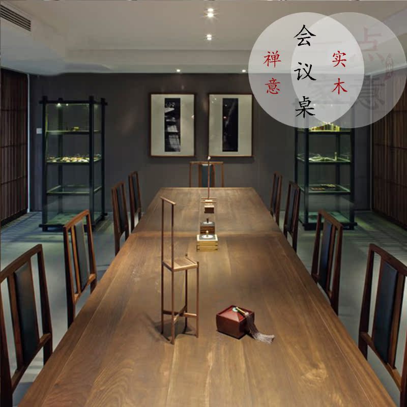 Conference table and chair combination long table solid wood modern new Chinese office long table Zen office furniture customization