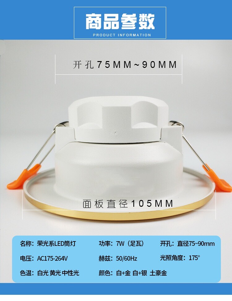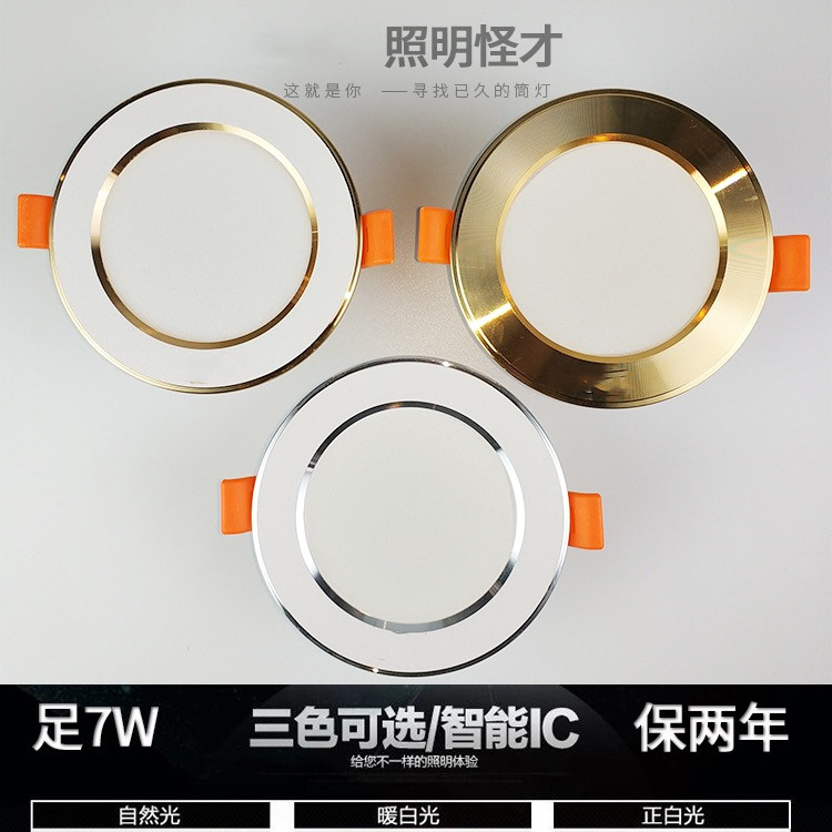 Light strange four seasons series downlight LED three-color dimming 7W suspended ceiling living room 2 5-inch embedded ceiling light spot light ODD