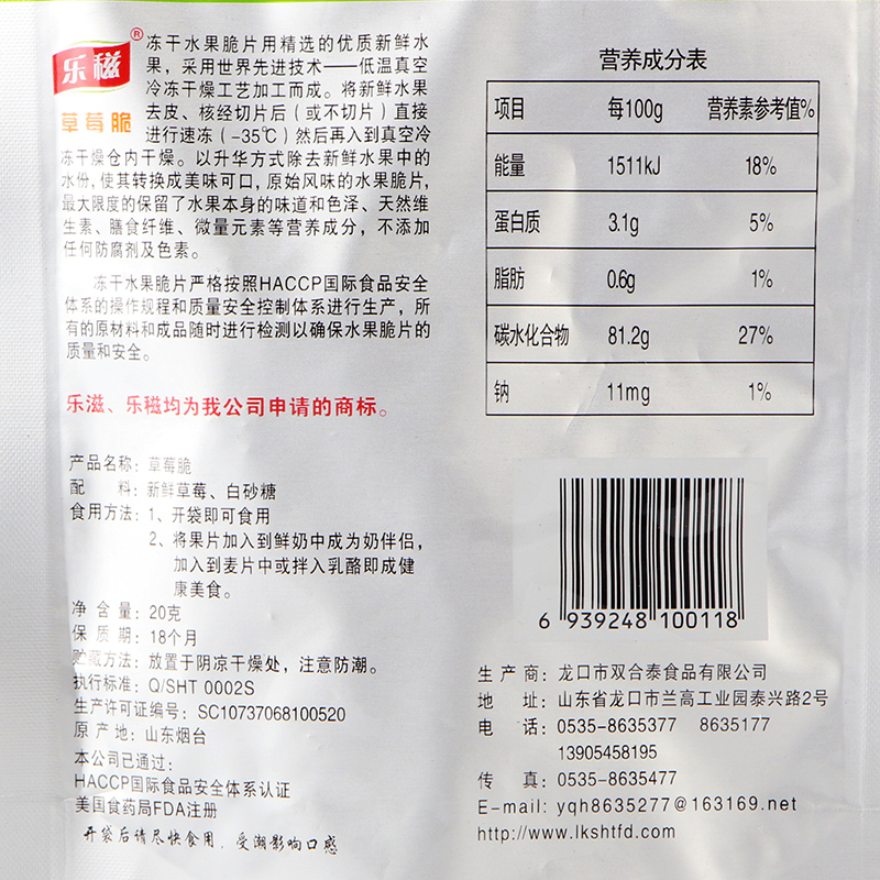Latte freeze-dried strawberry crisp 20g apple crisp 20g peach simply 20g fruits and vegetables simply snacks Shandong special produce