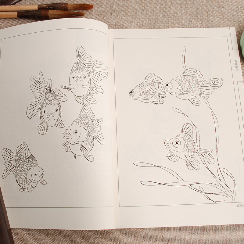 Chinese painting line of dryfish painting book white painting white painting painting white painting of brush painting of beginner fish