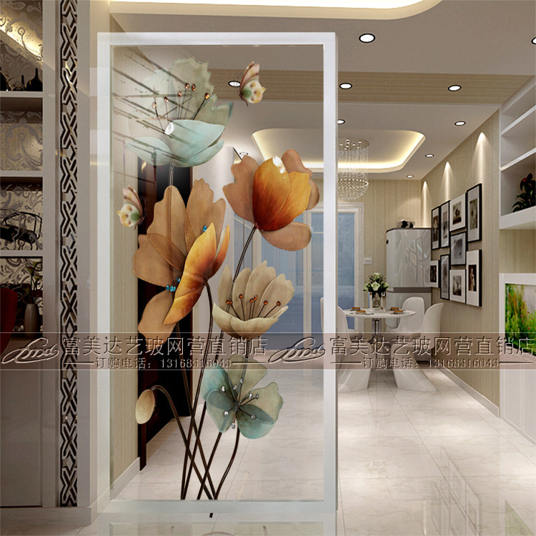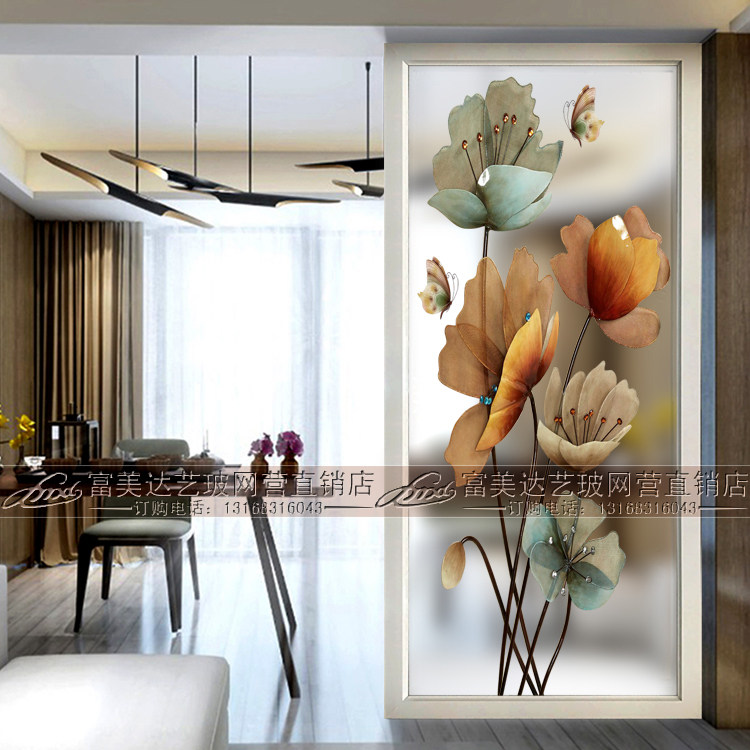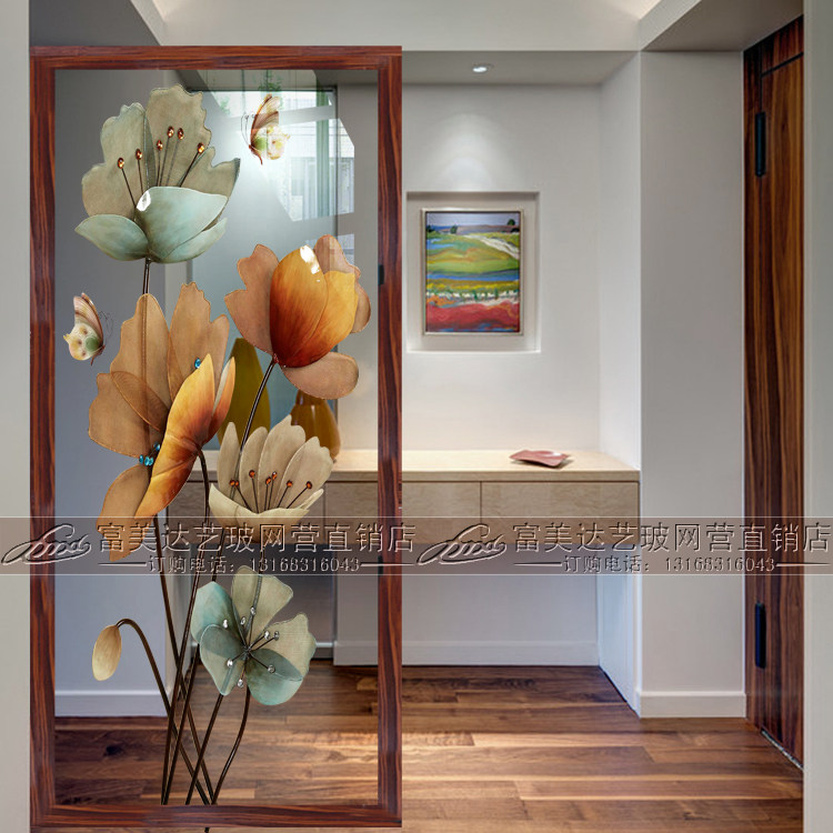 Nordic decorative art glass screen partition wall Double-sided translucent living room entry shoe cabinet entrance Powder room Modern