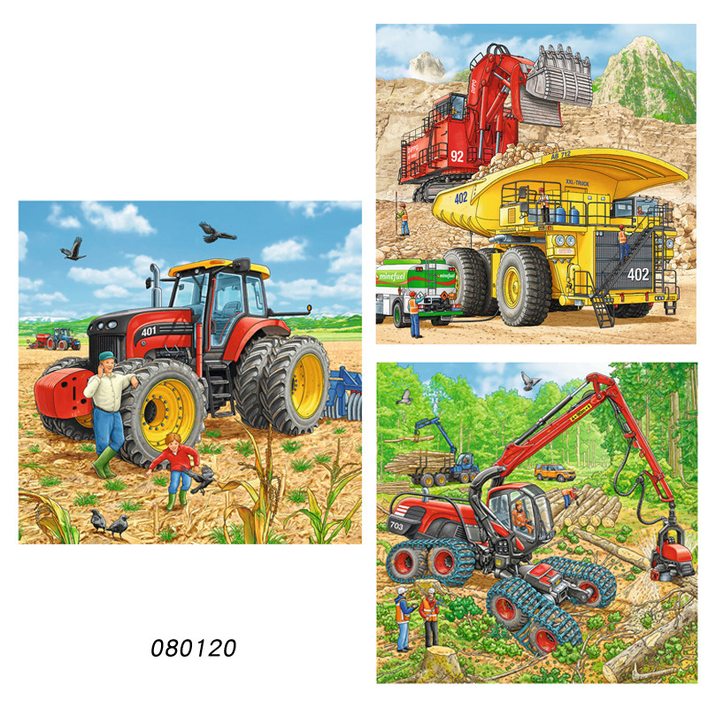 Ruisi Ravensburger mechanical tractor truck harvester 3×49 pieces of German children's puzzle toy