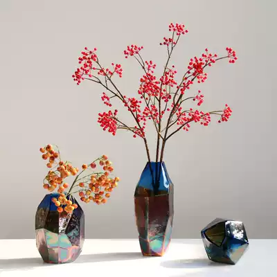 Modern minimalist illusion colorful meteorite geometry thickened glass vase model room flower arrangement flower arrangement home soft decoration