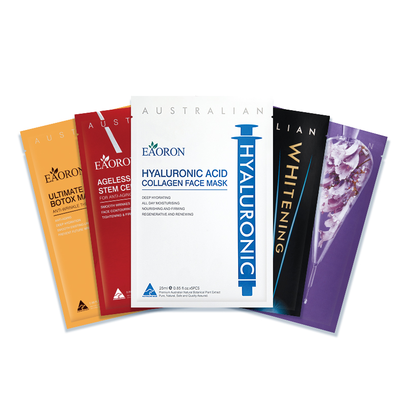 White box (collagen moisturizing) red box (lifting to edema) black box (magnesium white tiled light) gold case (hyper-pleasing to face) Purple box (blue flower-in-flower soothing)