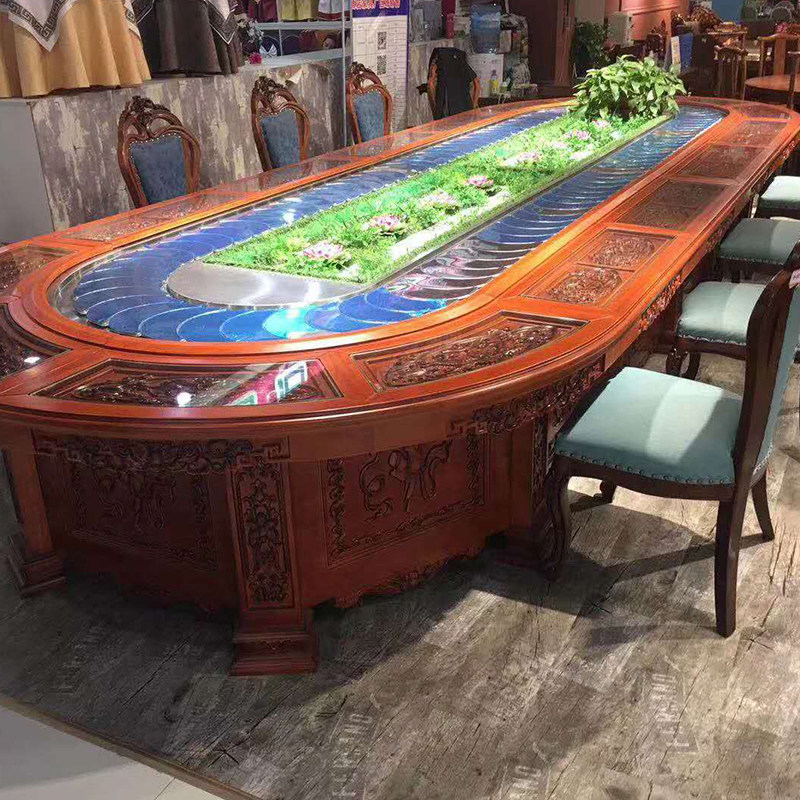 Oval solid wood electric dining table and chair electric large round table turntable Oval conveyor belt turntable factory direct sales