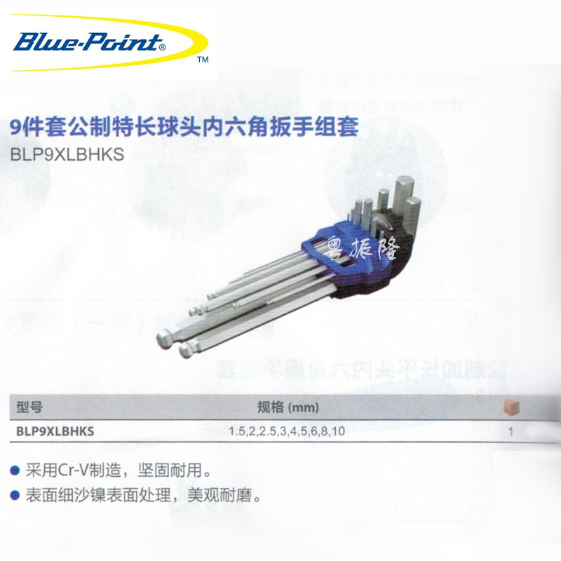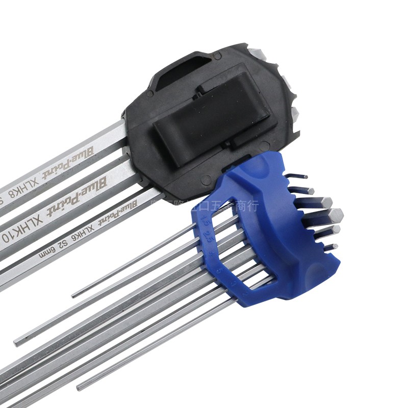 Blue dot 9 pieces metric extended extra long flat head ball head Allen wrench set plus hard and strong L-shaped hexagon key S2