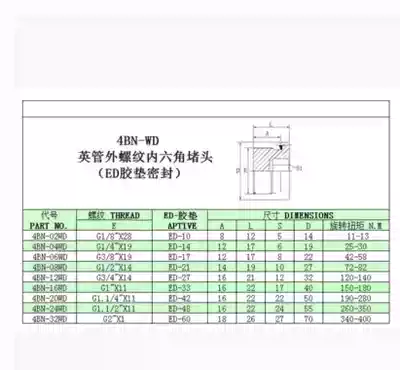 ED groove hexagon side choke plug Flange face pipe plug M8X1-M48X2G1 8 1 4 3 81 23 4