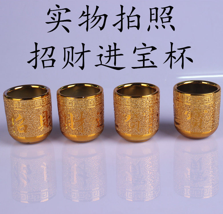 Golden Sand Ceramic Cup God for Taiwan Ties Divine Cup Water Supply Cup Ceramic Cup Wine Glass Monastery Water Supply Cup Three Lianlian 5 Lions Cup