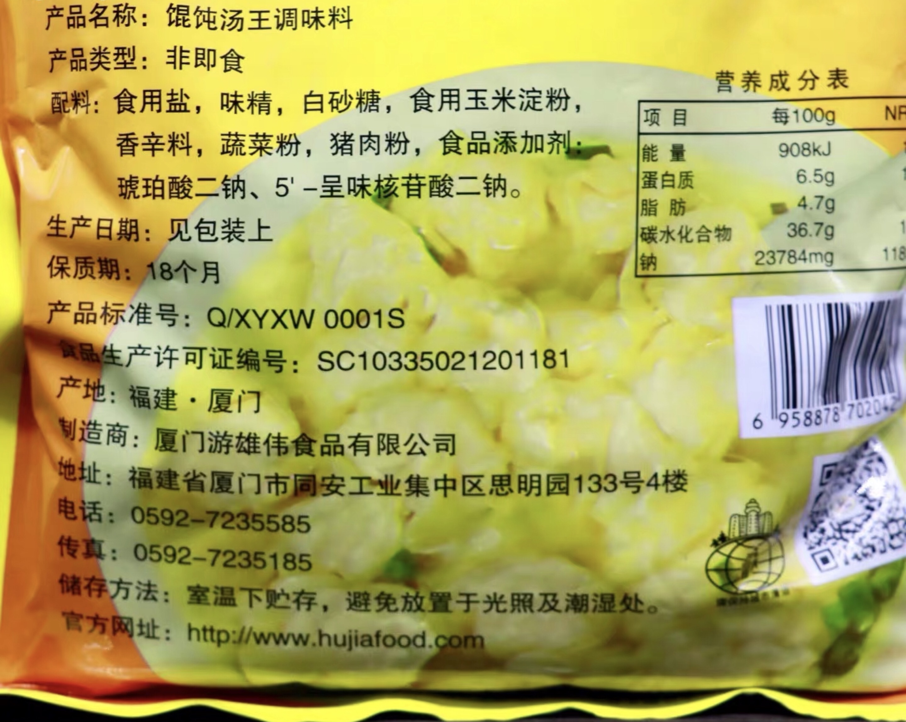 Hujia Wonton Soup King Seasoning 908g Shaxian Snack Qianlixiang Small Wonton Wonton Dumpling Soup