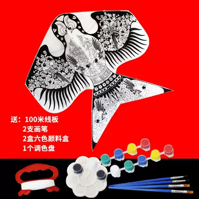 Big DIY kite material package butterfly material package triangle material package diamond material package drawing sand Yan 100 meters red line Board 4 pens 2 pigments blank butterfly 50 meters