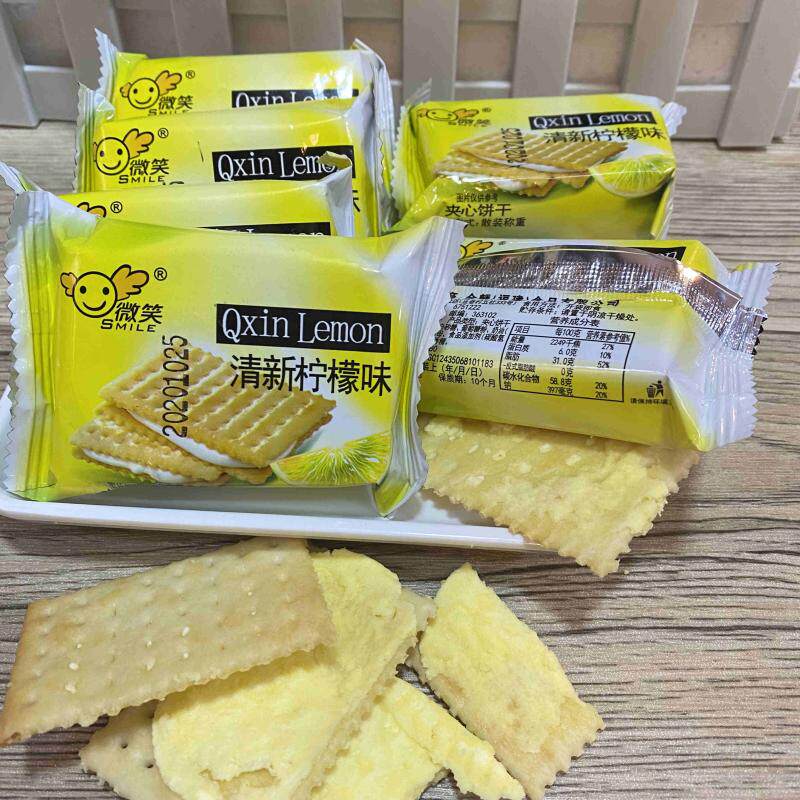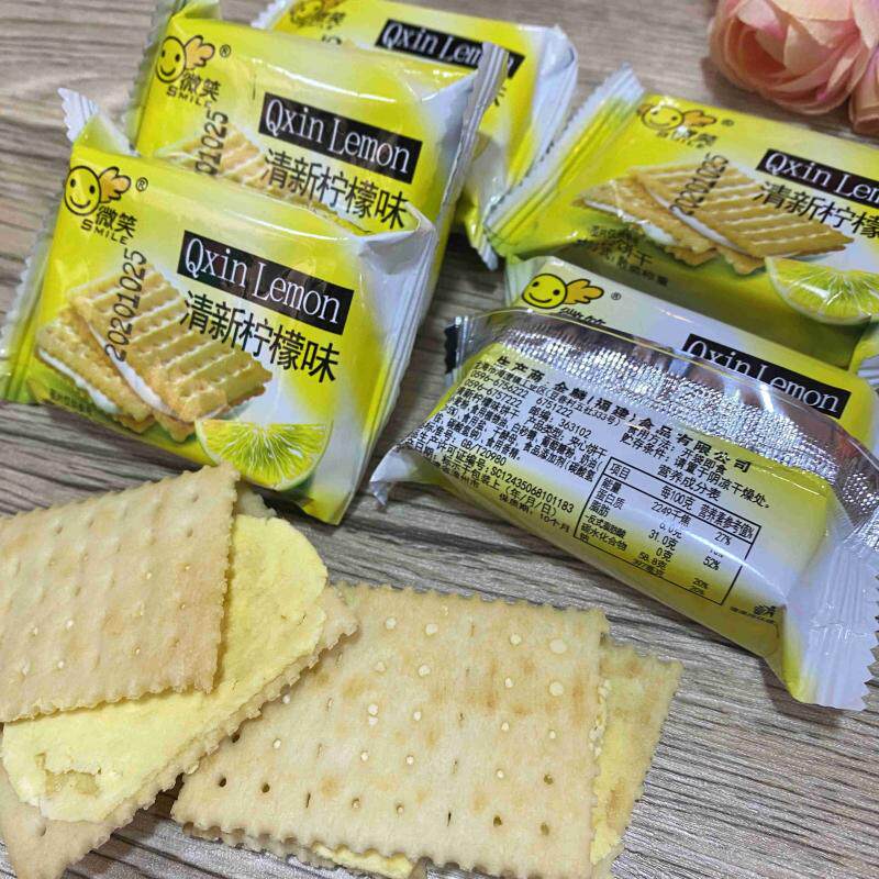 Salty and fresh lemon flavor sandwich biscuits loose soda sandwich biscuits salty and sweet lemon flavor casual snacks