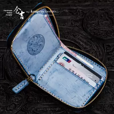 Kurayoshi handmade small wallet female fog wax leather gift men's short zipper wallet cowhide leather vertical leather wallet
