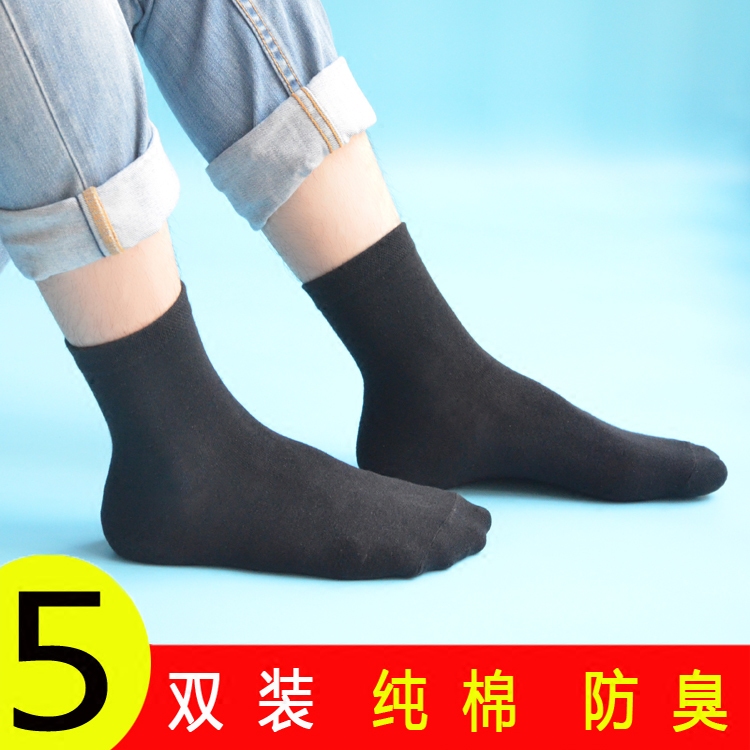 Men's mid-tube socks autumn and winter suit leather shoes business high-waist socks pure cotton black and white stockings sports deodorant socks