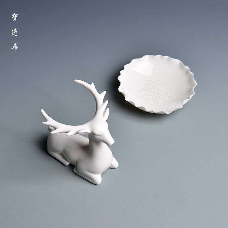 Happy Deer Porcelain Filter Tea Ware Ivory White Porcelain Green Porcelain Filter Tea Ware Porcelain hole filter Tea Tea Leaking Tea Filter Tea Duct Spare Parts