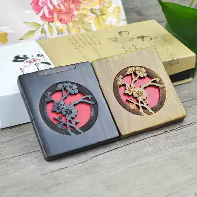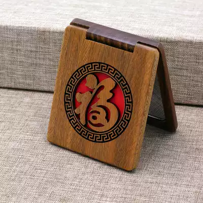 Solid Wood small mirror makeup mirror folding portable desktop monomirror wooden plum blossom hollow mirror travel makeup mirror