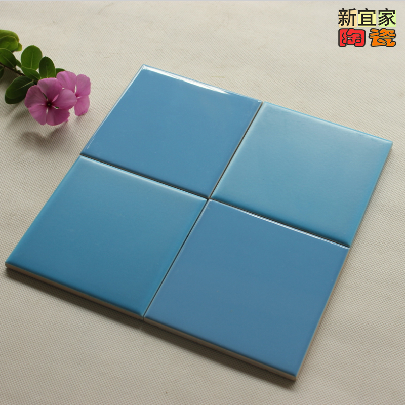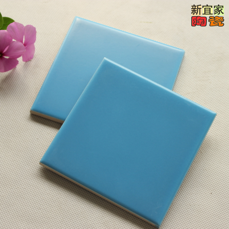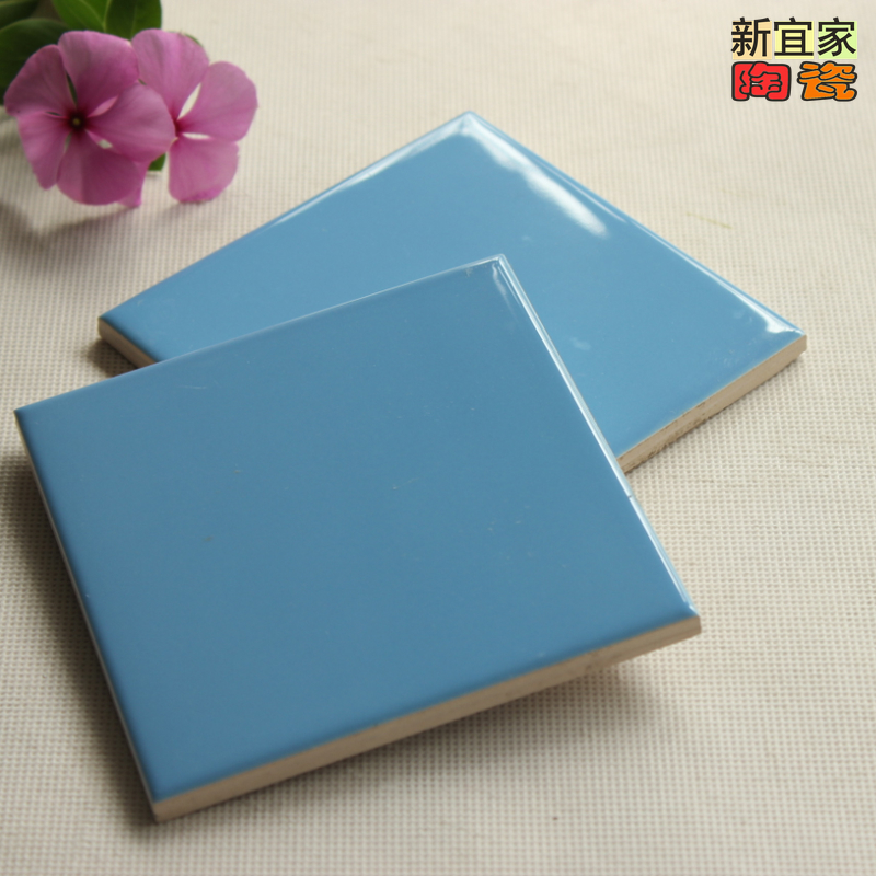 Sky Blue Matt Bright Light Kindergarten Milk Tea Tile Pure Color Small Square Brick Porcelain Sheet Glazed Face Brick Kitchen Bathroom Wall Brick