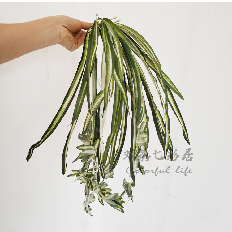 Simulation hanging orchid Fake flower wall decoration flower plant wall hanging orchid green edge bamboo leaf orchid hanging white line hanging orchid