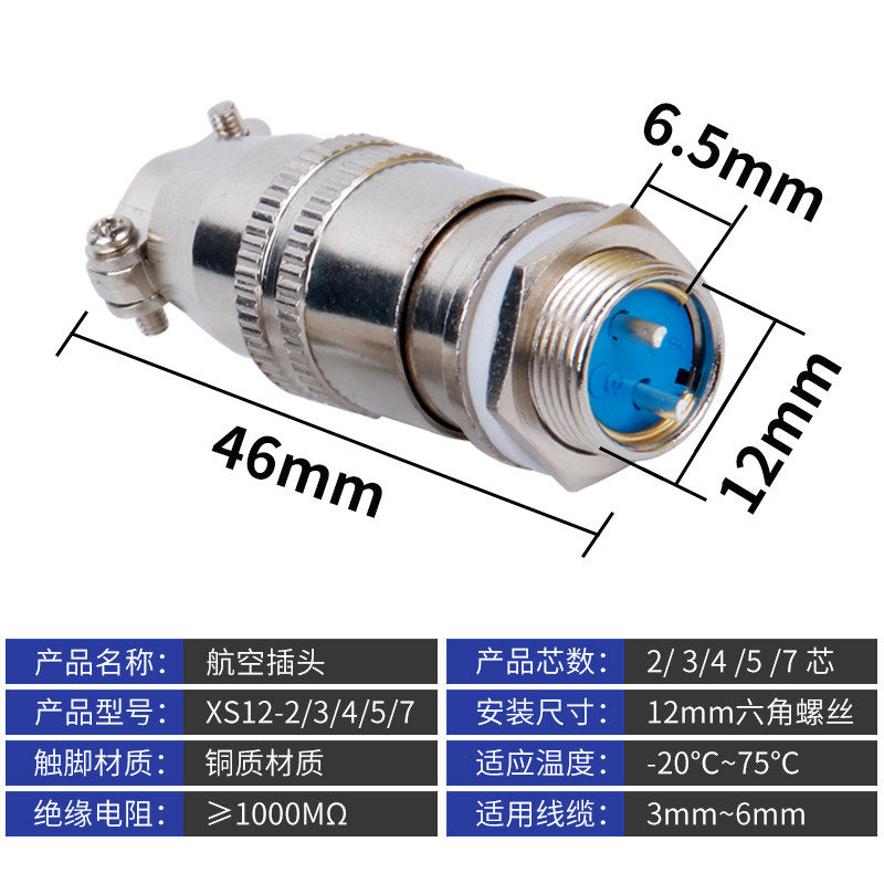 Aviation plug socket XS12-2 core 3 core 4 core 5 core 6 core 7 core quick plug copper connector