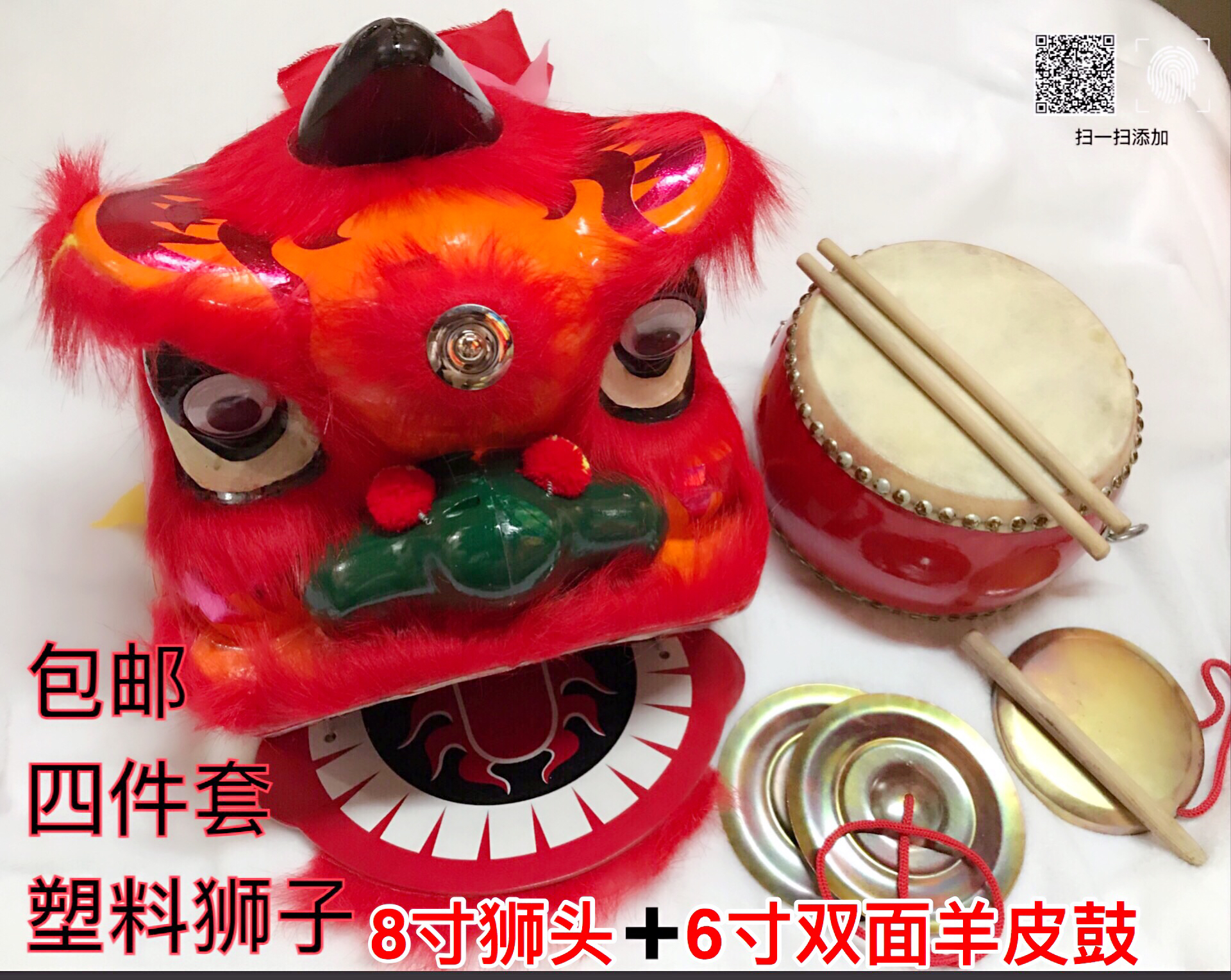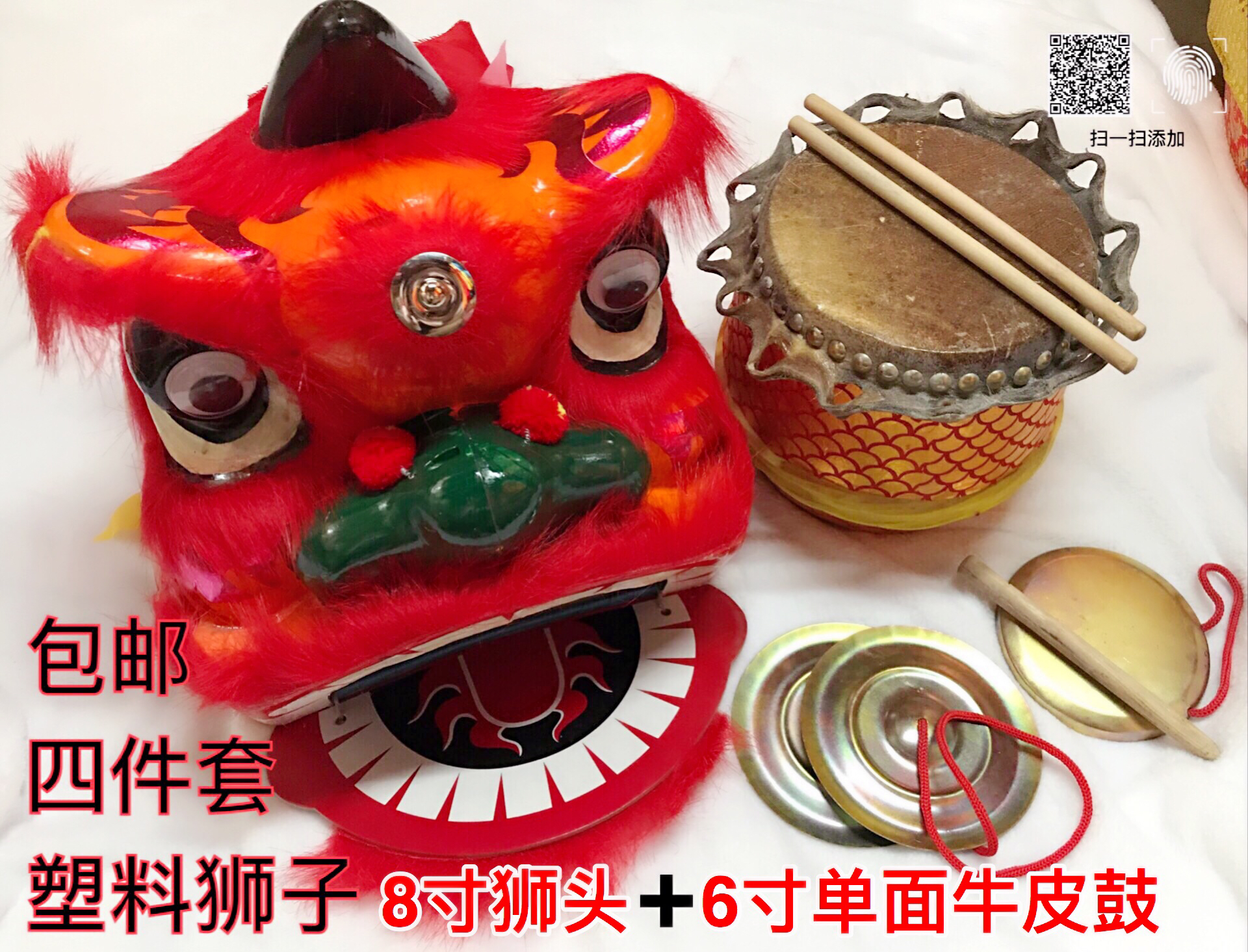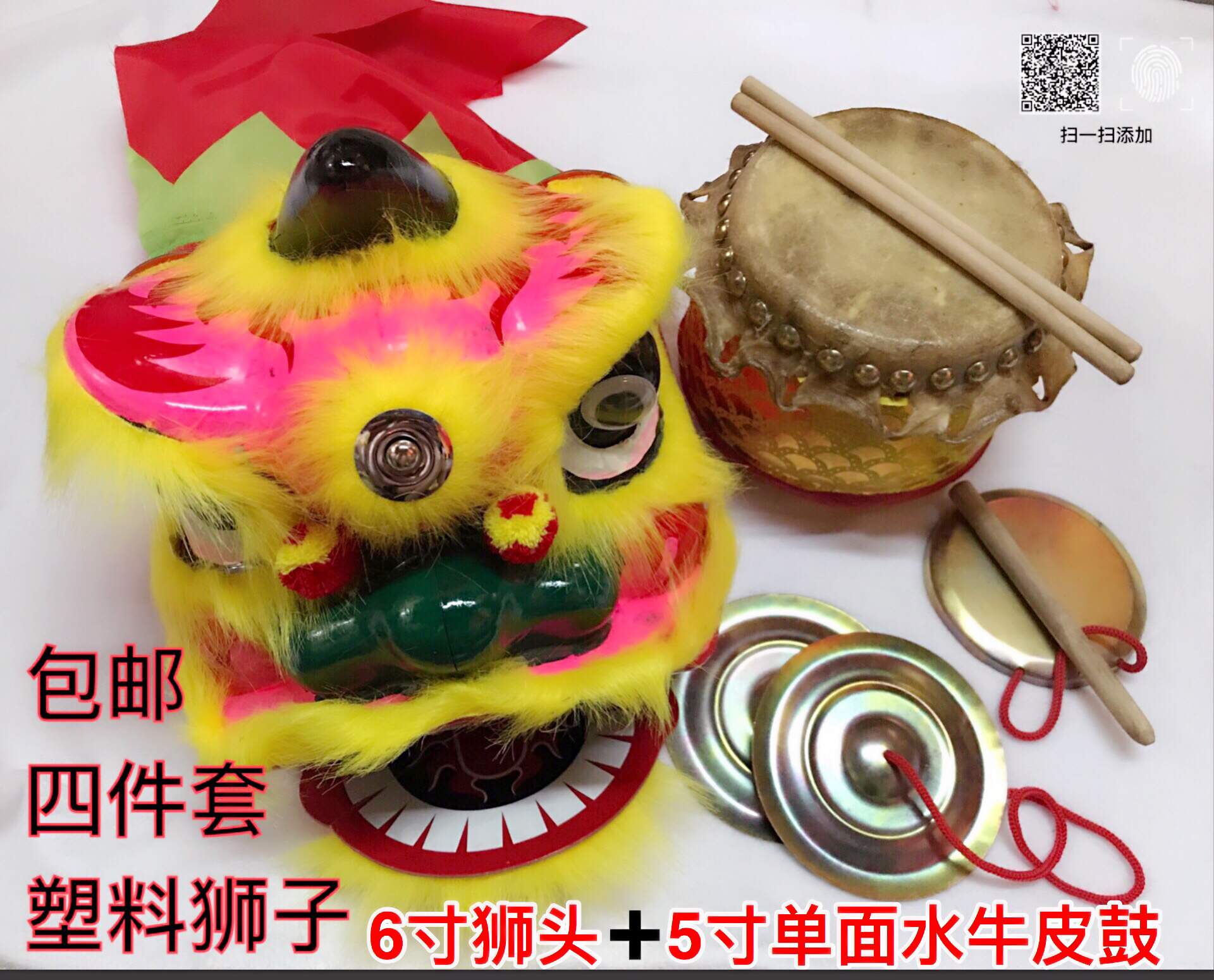 Fall-resistant version of plastic lion head 6 inches children's lion dance plastic wake-up lion southern lion lion head plastic lion dance four-piece set
