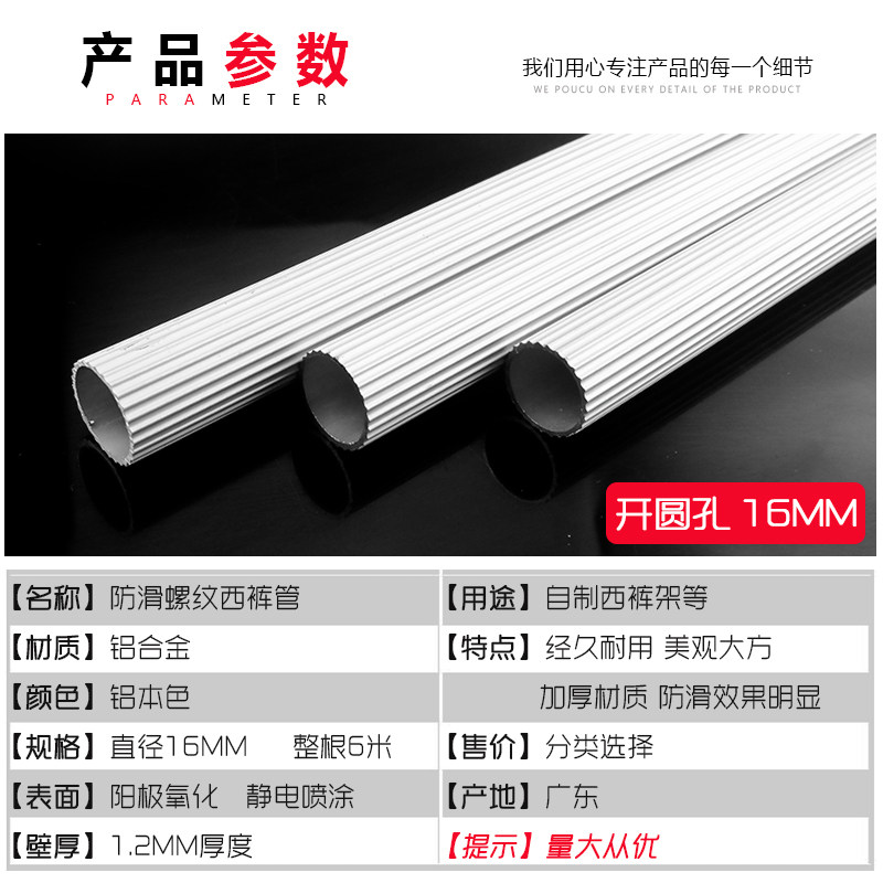 Custom threaded trouser rack 16mm cabinet panty rack Aluminum alloy non-slip trousers dedicated hanging pants wardrobe hanging pants