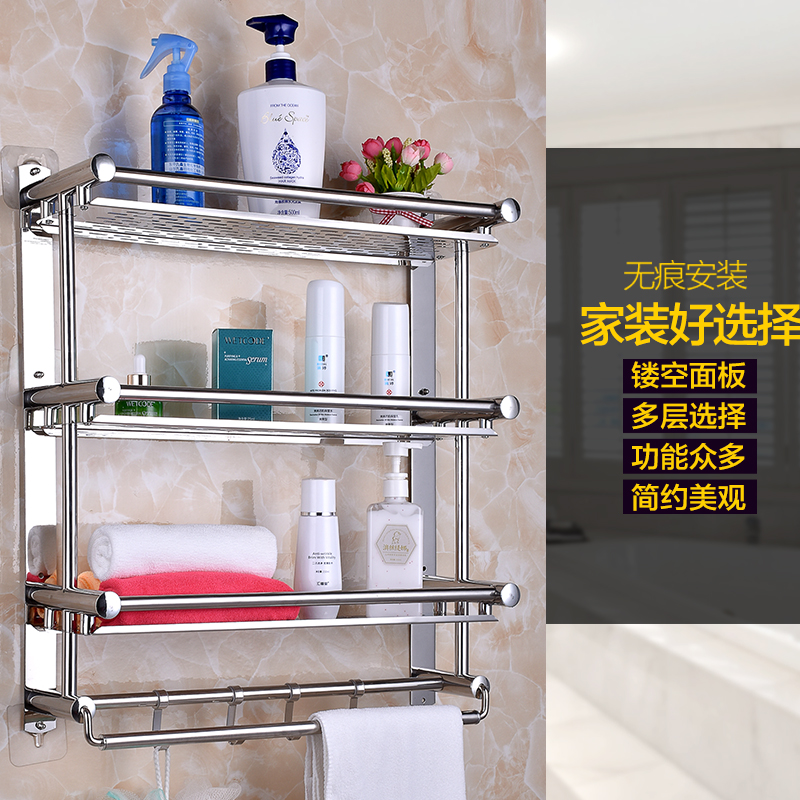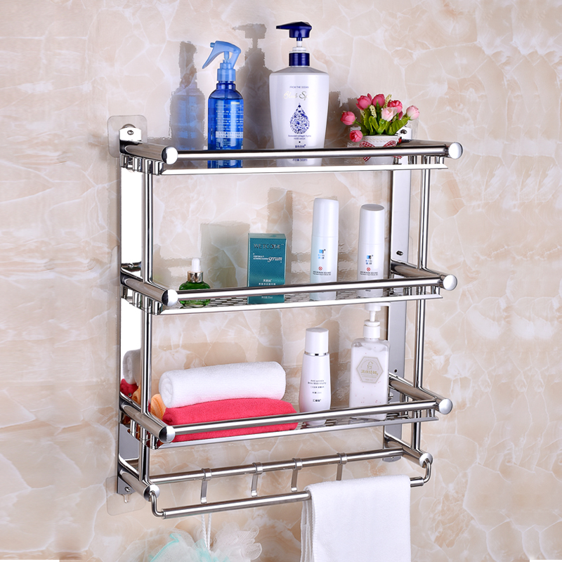 Bathroom Shelve Makeup Room Hair Towel Rack Stainless Steel Free punching bath towels 2 floors 3-floor Toilet Containing shelf wall-mounted