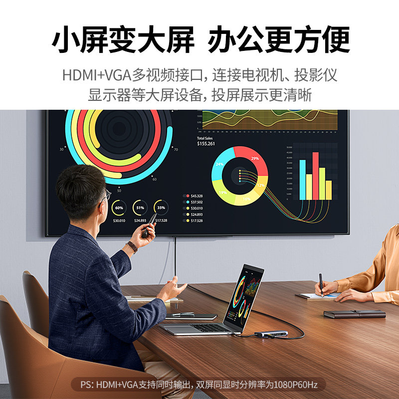Green-linked TypeC converter notebook usb expansion dock hdmi thunderbolt 3 multi-interface extension cable suitable for ipad tablet Huawei mobile phone apple macbookpro computer expansion