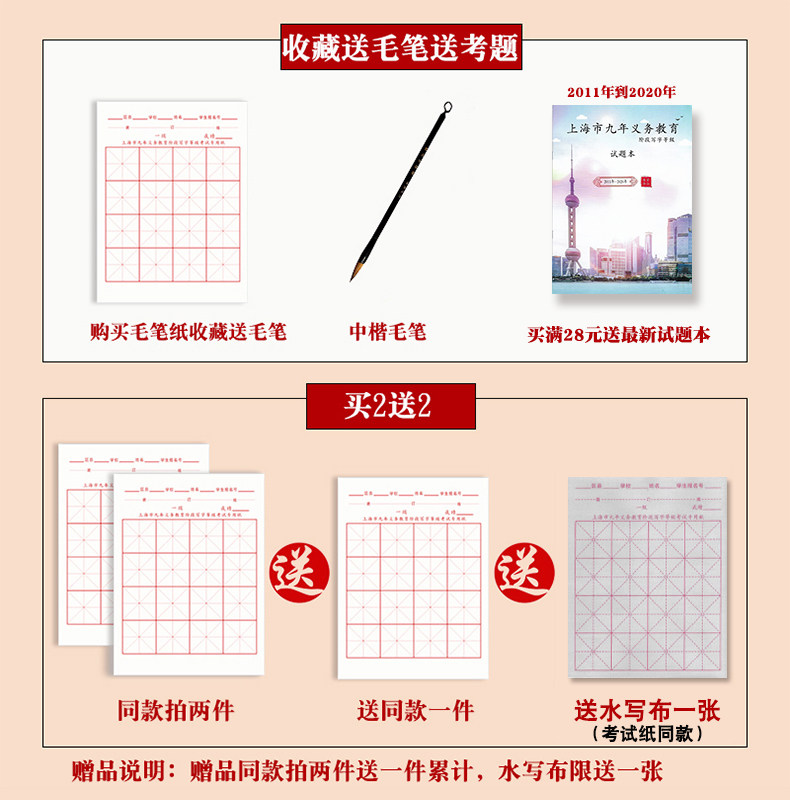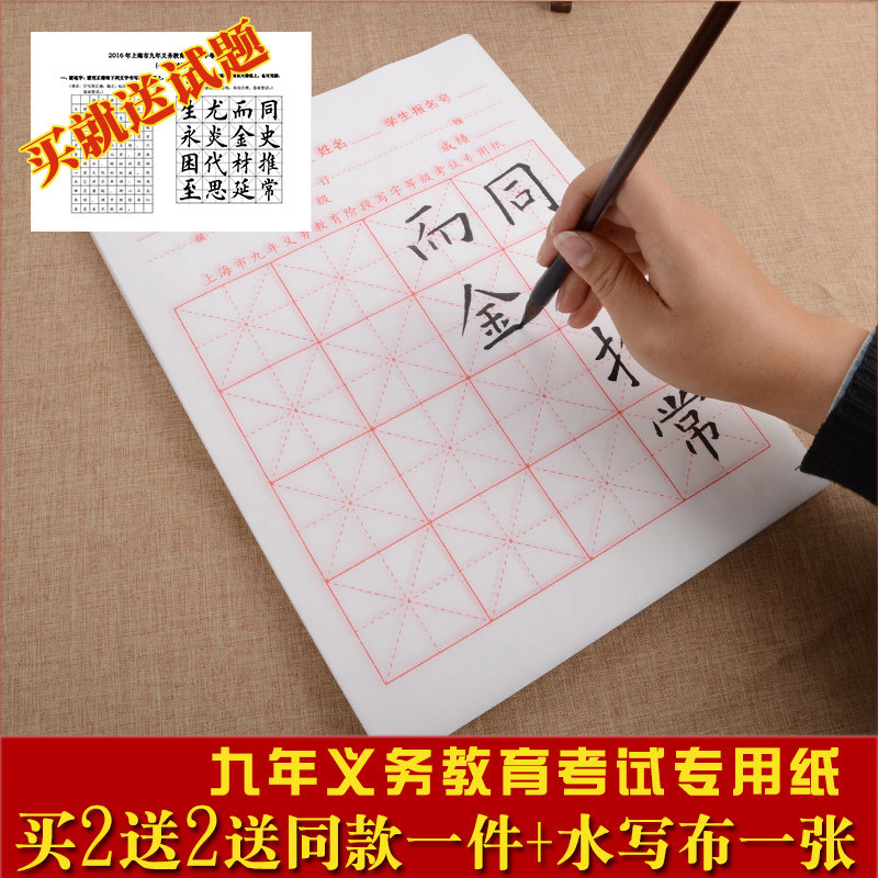 Shanghai nine years compulsory education calligraphy examination special paper stage writing grade paper 16 grade half-raw metal character 5cm elementary pen pen writing paper