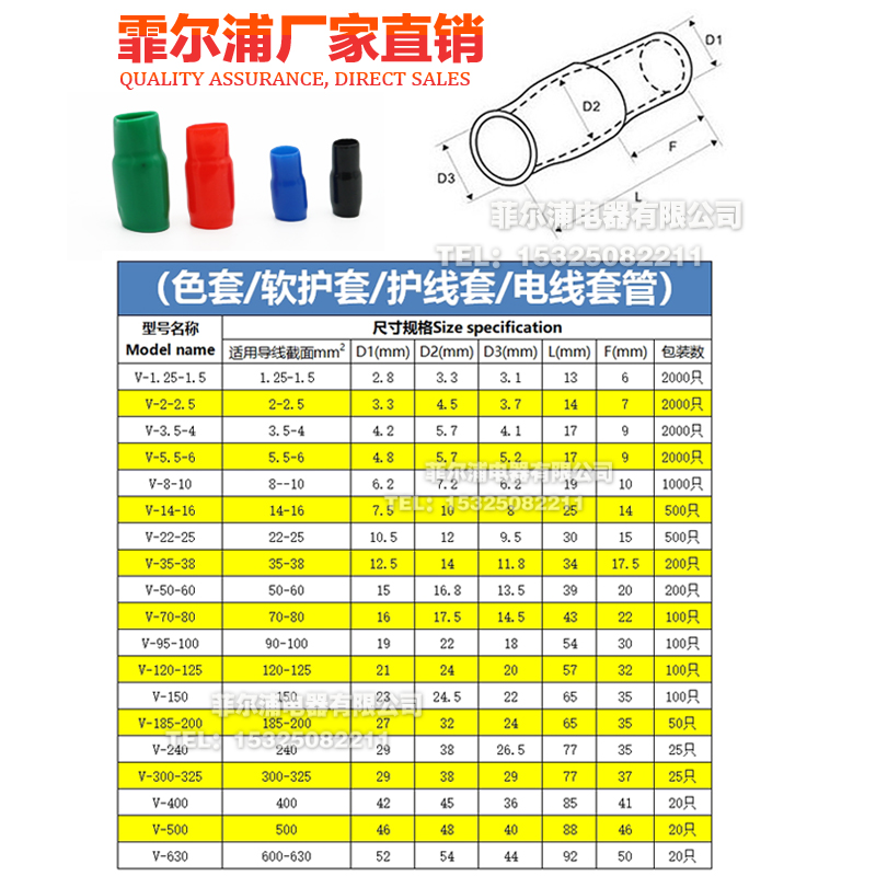 Cold-pressed bare end insulated soft casing terminal sheath Red, yellow, blue, green and black flame retardant cable wire color sleeve