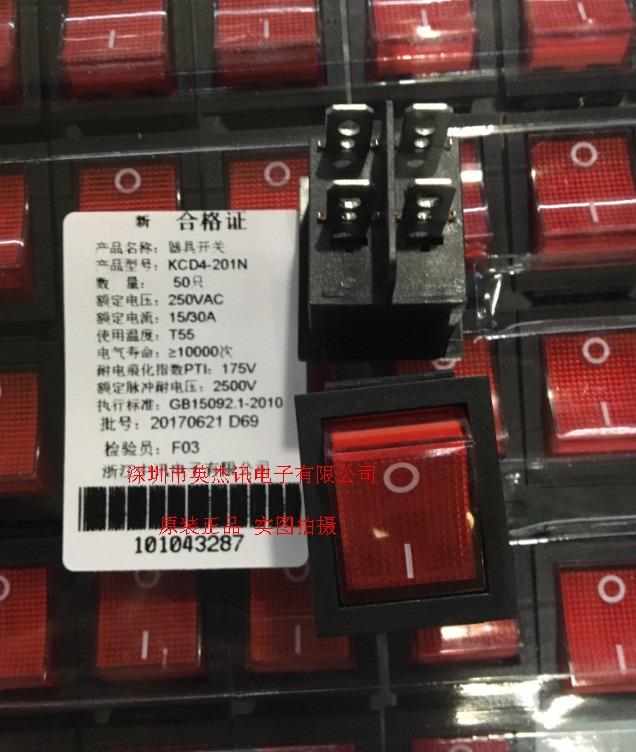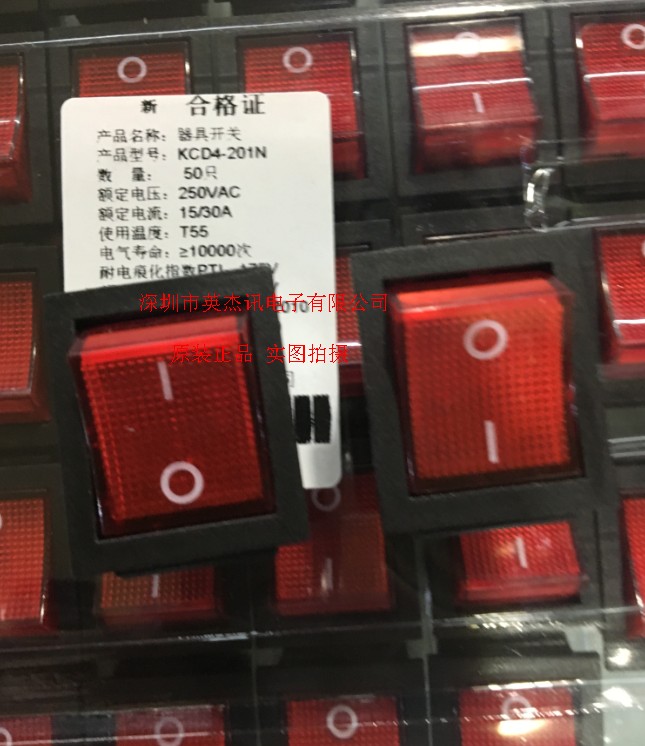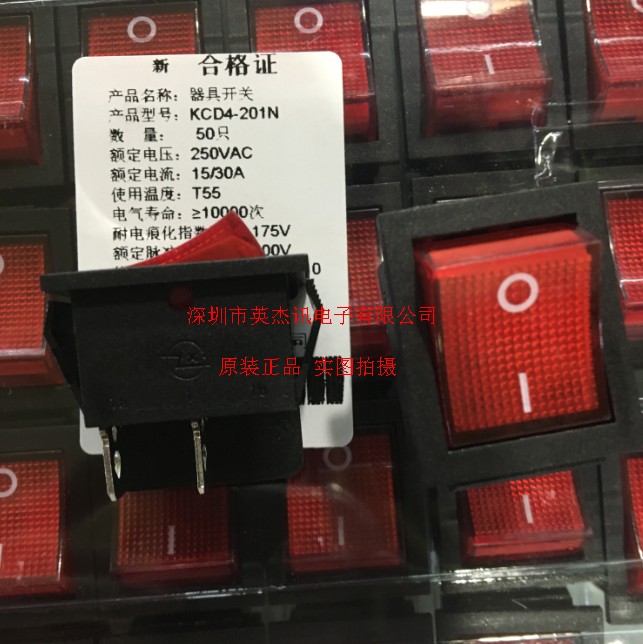 ZX Zhongxun rocker switch KCD4-201N red with lights 4 feet 2 gears 15A-30A 250VAC