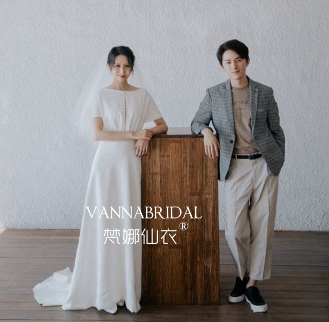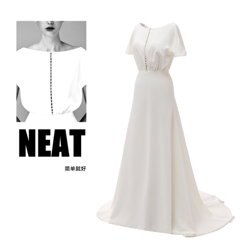 Minimalist lawn wedding Yingding yarn Brigade slapped light wedding dress Dress Satin Face Bride's Engagement Registration of the Wedding Dress Code