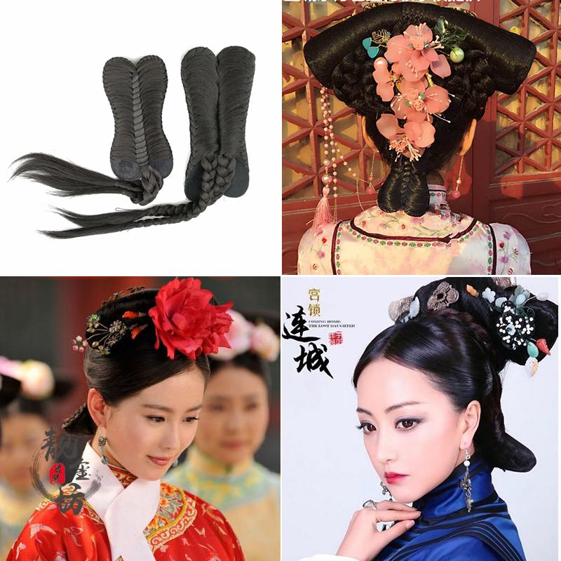 Photo gallery Ancient Clothing Styling dovetail photo gallery Write a real performance Qing Dynasty Palace Timing Fujin Gge Flag Head Decorated Dovetail Wig