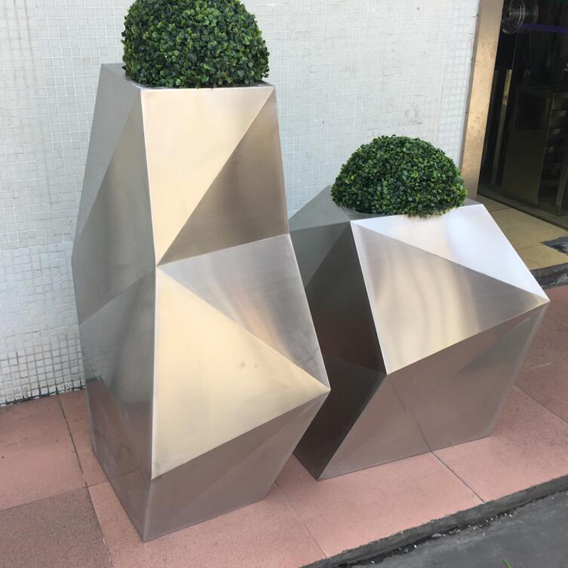 Stainless steel vase Special-shaped flower pot Metal flower pot Brushed rose gold flower pot Paint floor flower pot