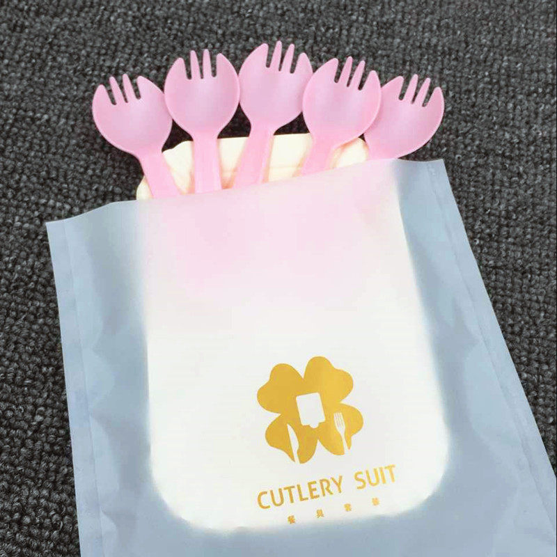 1 knife, 5 long plates, 5 pink forks and spoons, 50 sets