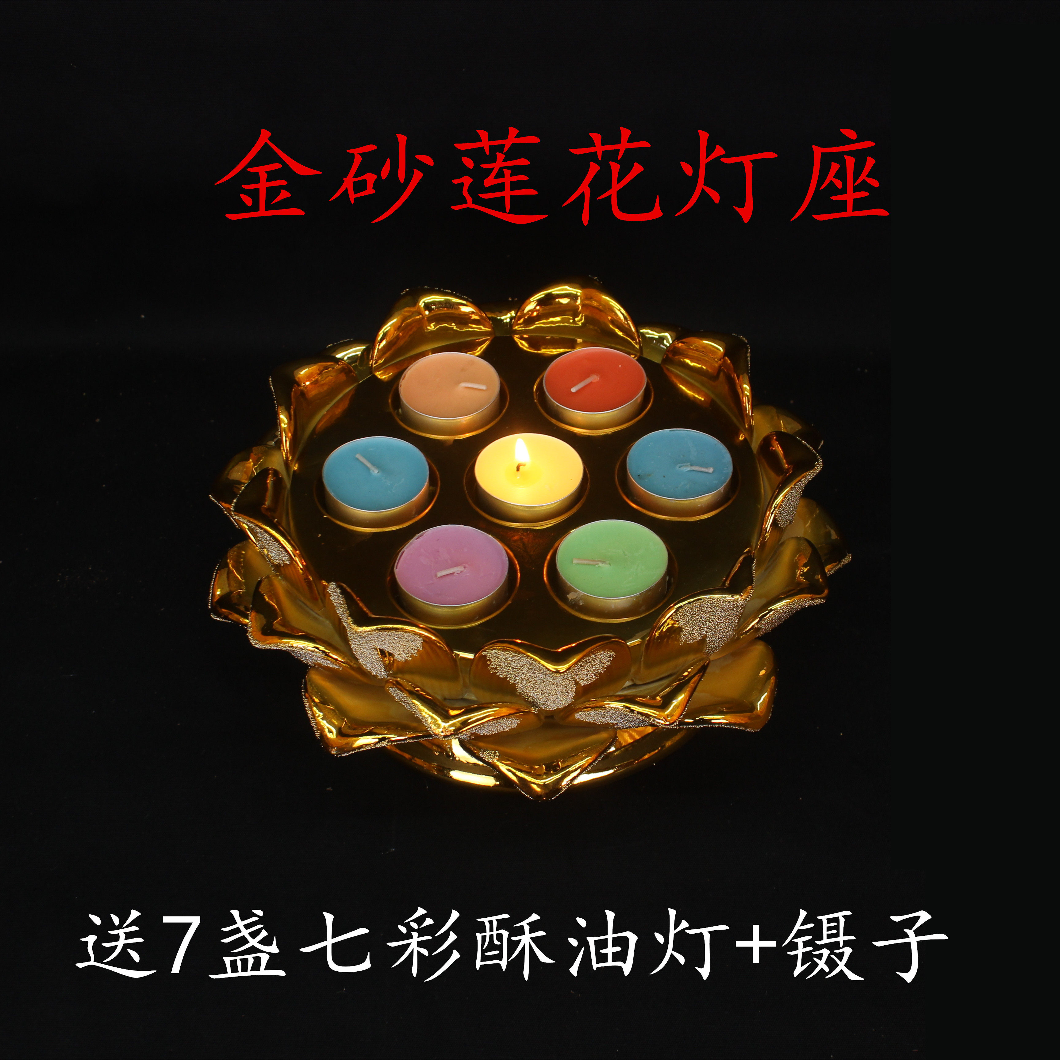 Lotus ceramic lamp holder Buddhism for lamp crisp oil lamp temple Buddha Hall lamp Seven color lotus lamp Buddhist lamp