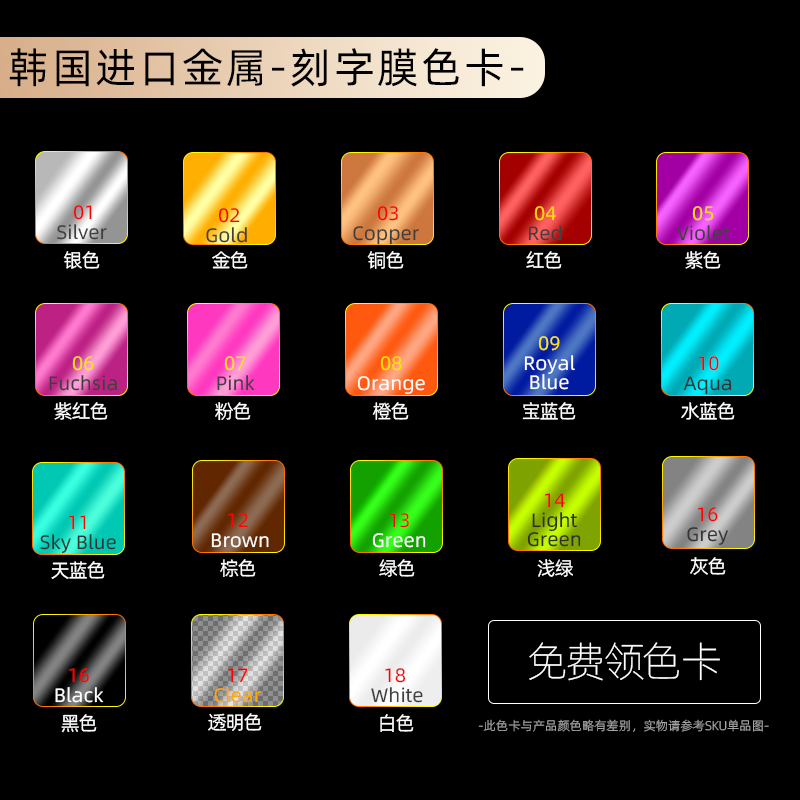 Silver Gold Red Purple Fuchsia Pink Royal Blue Sky Blue Green Light Green Gray Black White Import-Hard Metal Series → Copper Orange Aqua Blue Brown Transparent Color Whole Roll 25m Price
