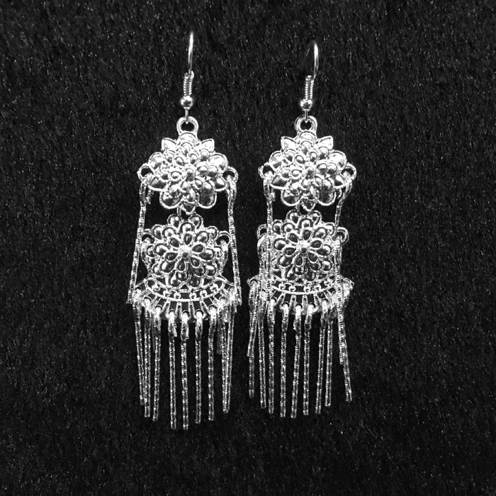 Hmong earrings silver earrings of the ancient national wind long stage installed atmospheric hundred earrings