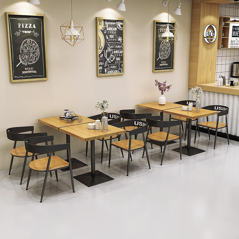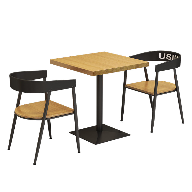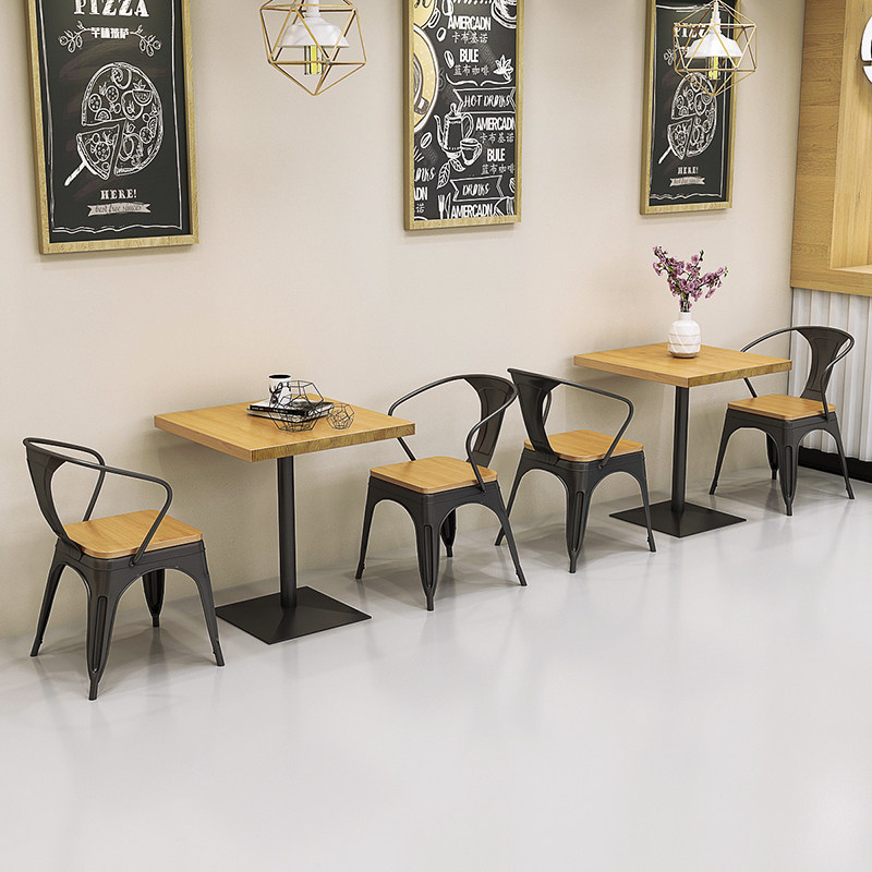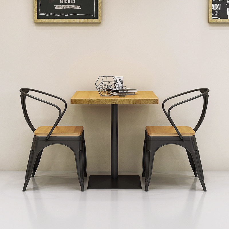 American milk tea shop small square table square iron art solid wood table tennis red fast food restaurant table and chairs combined 1016