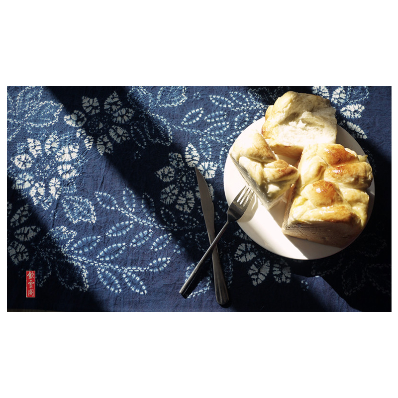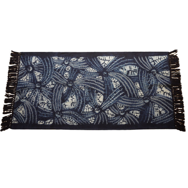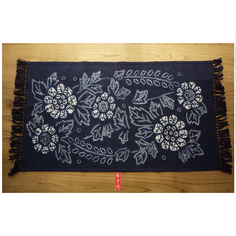 Handmade fabric placemat tie-dyed plant blue-dyed rectangular tassel ethnic pastoral style tea mat insulation pad 90×45cm