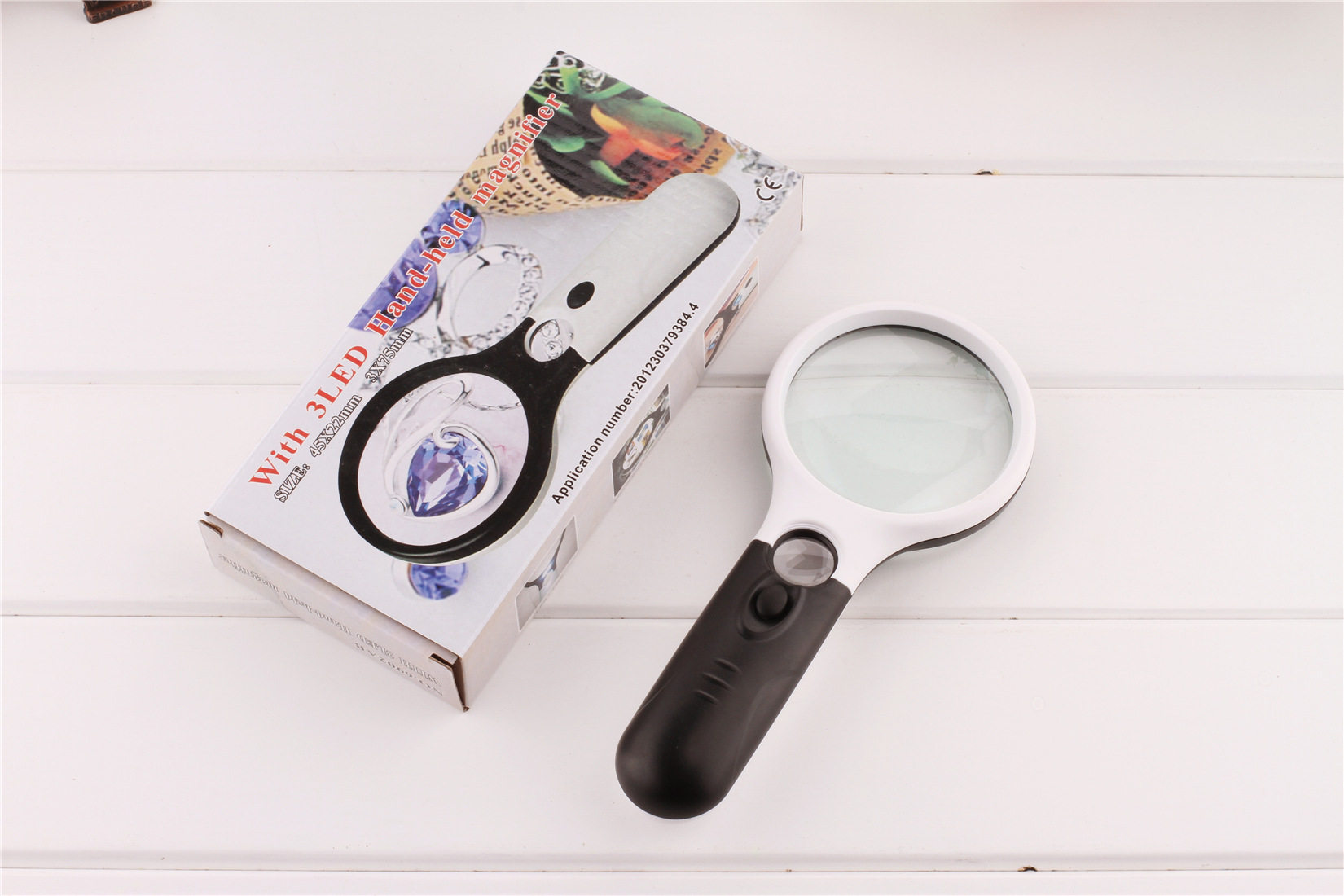 High-fold optical handheld magnifier with lamp 75MM10 fold HD elderly Read maintenance appraisal 30 times portable