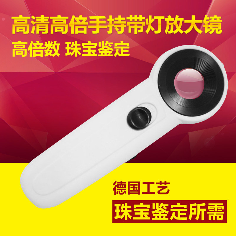 High-definition high-fold handheld magnifier with lamp 40 times portable jade printed stamp antique jewelery led